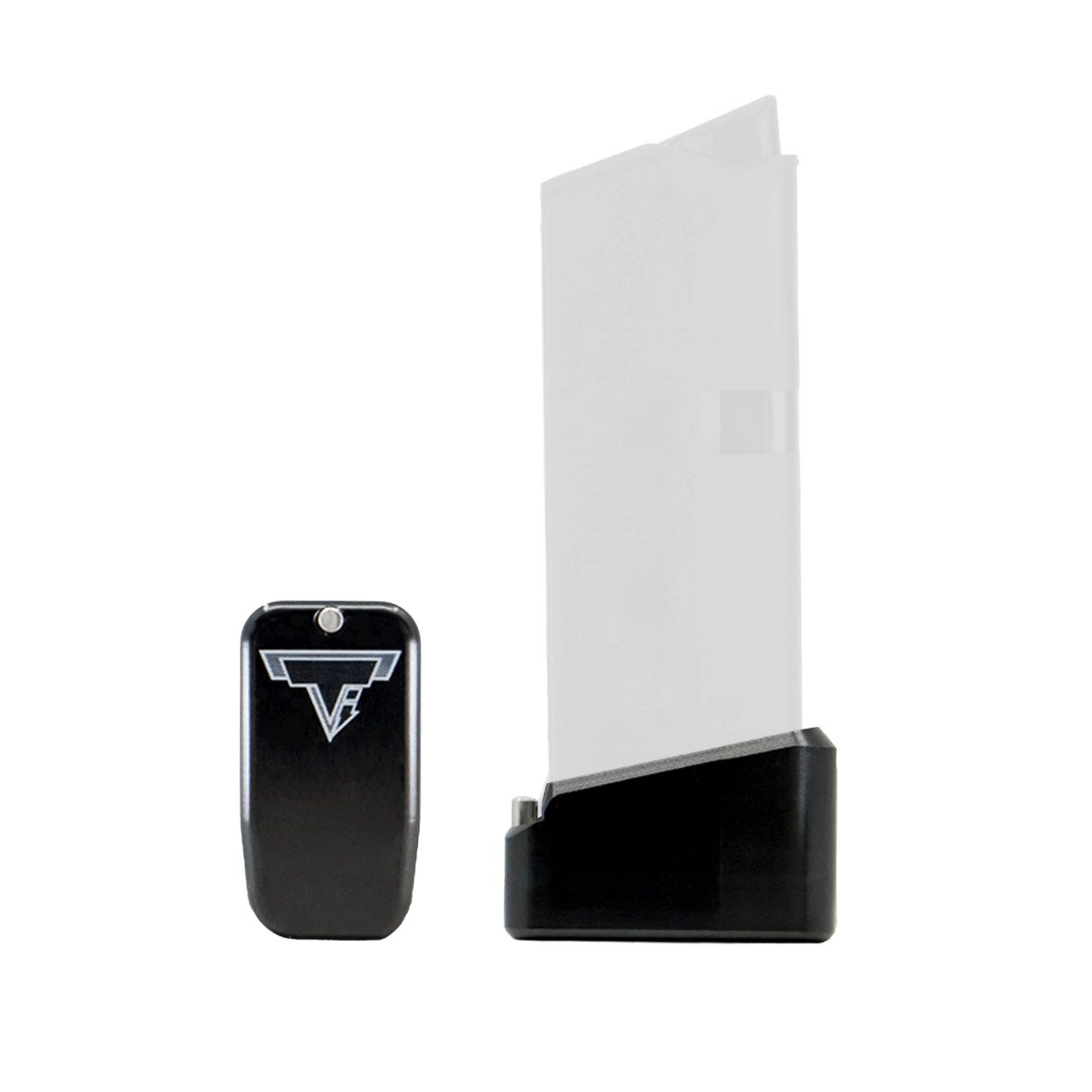 This Taran Tactical Innovations GLOCK base pad is designed for the GLOCK 43. This TTI base pad adds 2 extra rounds to the magazine. We use our patented push pin design to lock the base pad to the magazine, which makes for easy field stripping and cleaning of your magazine. Just push down the pin, slide the base pad on and push the pin up to lock it onto the magazine. Our one piece design is great because there are no extra parts or tools needed to attach the base pad to your magazine. The base pad itself is machined out of billet aluminum and is hard anodized to ensure durable long lasting color. All machining and manufacturing is done in the USA.