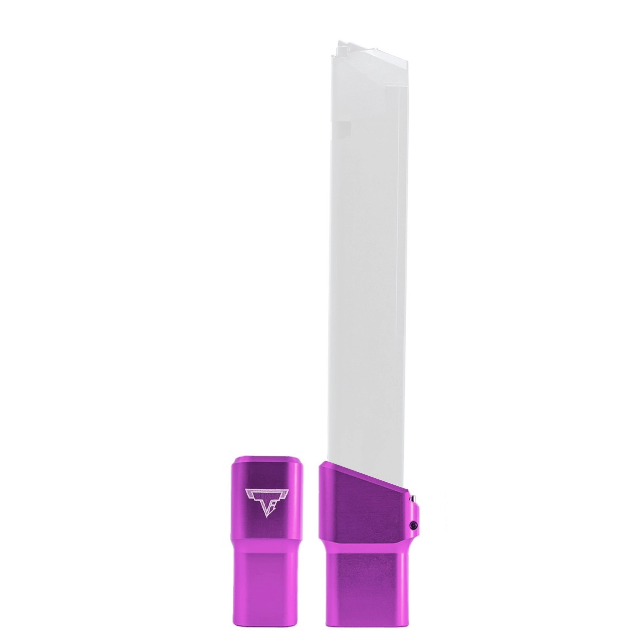 This base pad does add a slight amount of extra weight to the magazine which helps the empty mag drop free easier for faster reloads. This GLOCK base pad, just like all of our base pads, is designed to give you the edge over your adversaries. We use our patented push pin design to lock the base pad to the magazine, which makes for easy field stripping and cleaning your magazines between stages. Just push down the pin, slide the base pad on and push the pin up to lock the base pad onto the magazine. Our one piece design is great because there are no extra parts or tools needed to attach the base pad to your magazine. The base pad itself is machined out of billet aluminum and is hard anodized to ensure durable long lasting color. All machining and manufacturing is done in the USA.