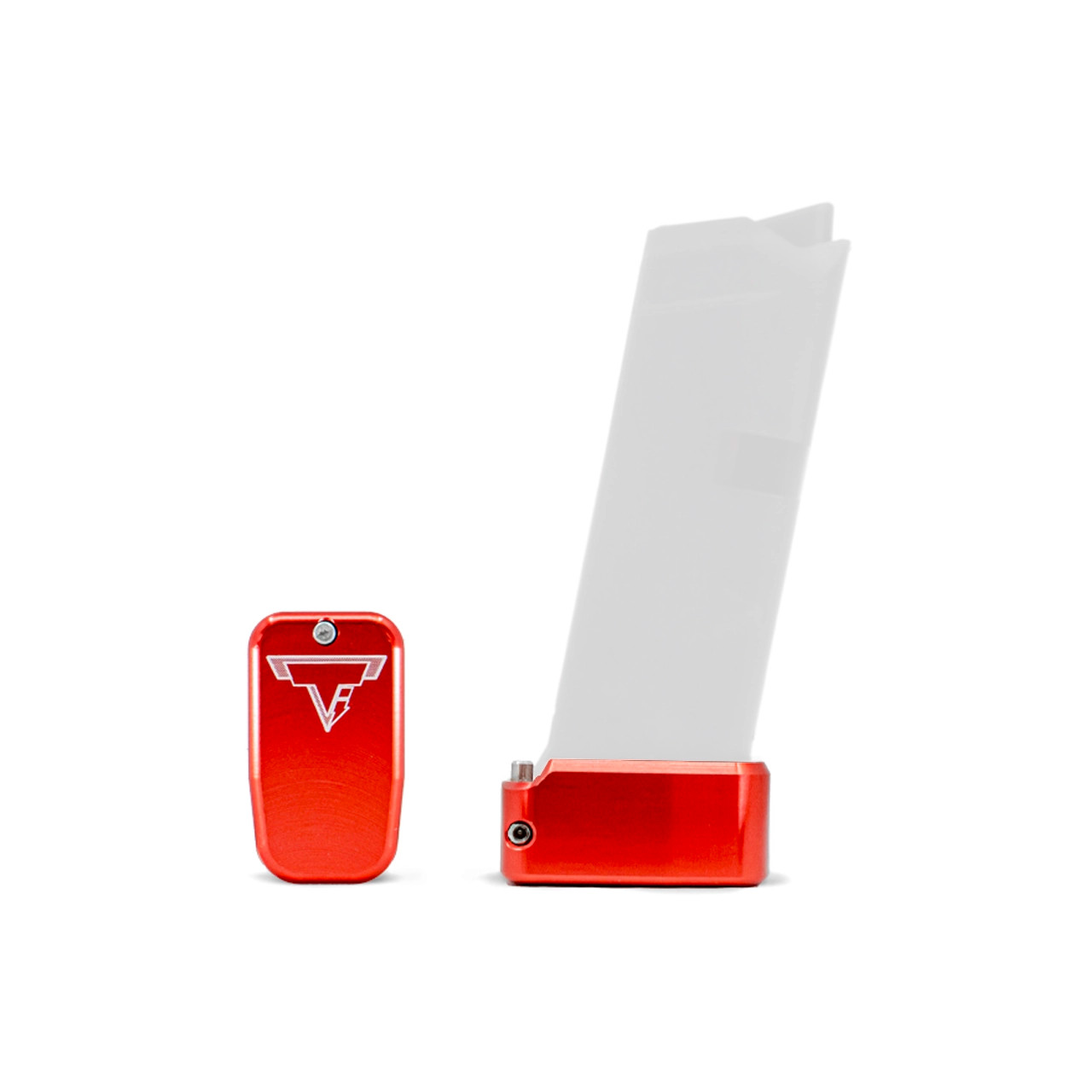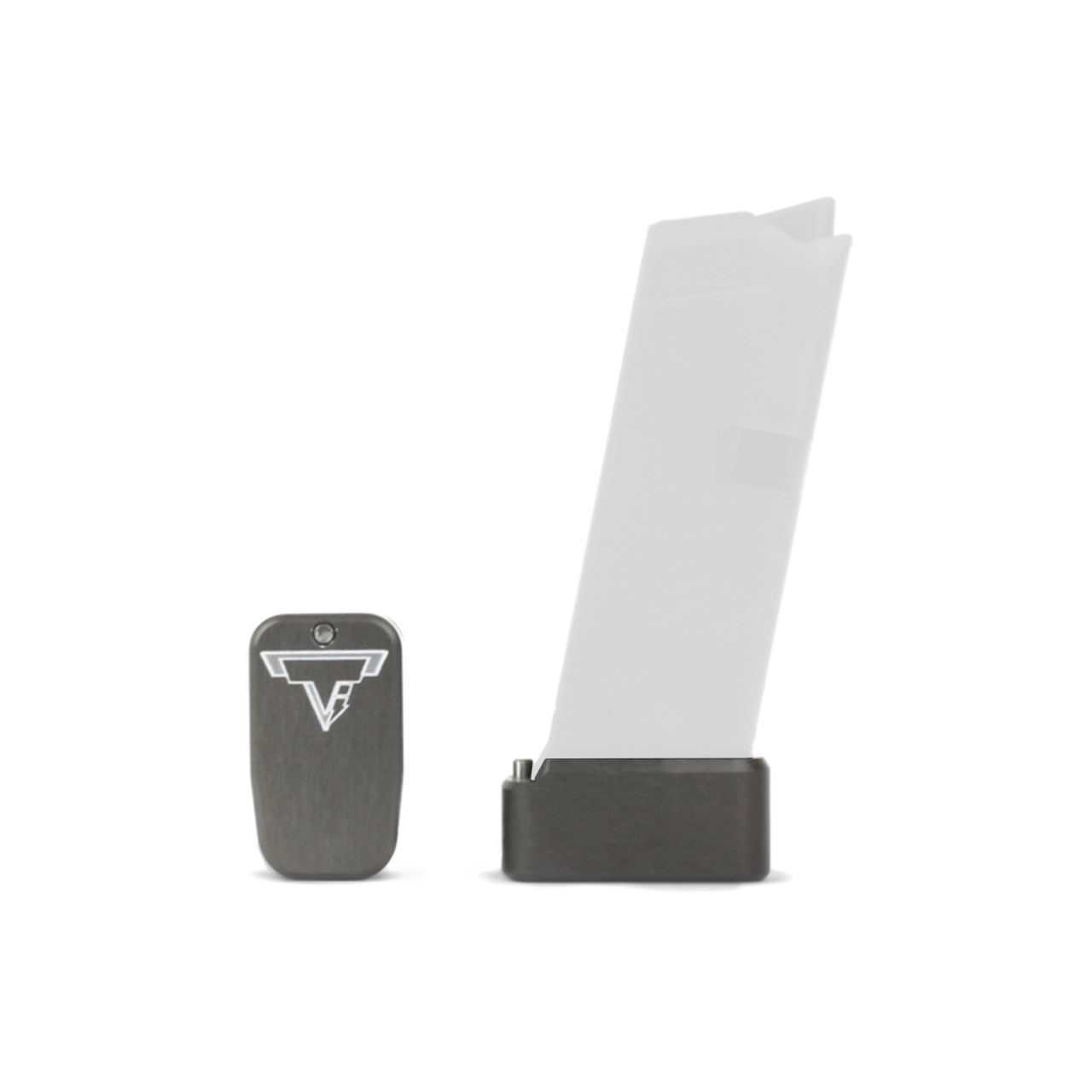 This Taran Tactical Innovations GLOCK base pad is designed for the GLOCK 42. This TTI base pad adds 2 extra round to the magazine. We use our patented push pin design to lock the base pad to the magazine, which makes for easy field stripping and cleaning of your magazine. Just push down the pin, slide the base pad on and push the pin up to lock it onto the magazine. Our one piece design is great because there are no extra parts or tools needed to attach the base pad to your magazine. The base pad itself is machined out of billet aluminum and is hard anodized to ensure durable long lasting color. All machining and manufacturing is done in the USA.