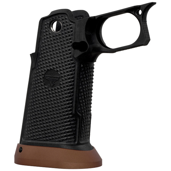 Introducing the all-new first of its kind, fiber/kevlar infused nylon grip module from TTI - The “TTI Phantom” 2011 Grip Module - This cutting edge technology allows for a grip module that doesn’t bend or warp when you grip it, giving you all the advantages of a metal grip without without any of the disadvantages. Precision machined custom aggressive texturing ensures the gun never leaves your hands.