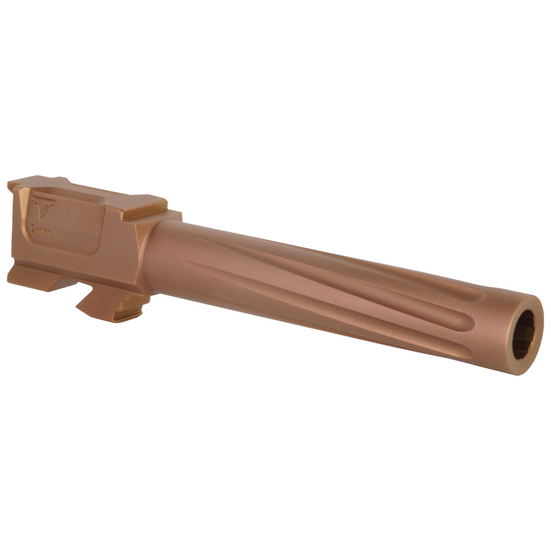 The Taran Tactical Innovations Match Grade Barrel gives you the ultimate edge in competition and self defense shooting. When accuracy matters, look no further than our match grade barrels. Fluted for increased cooling and less weight overall, our precision machined barrels feature 416R Stainless Steel with a 1/14”RH twist rate and a PVD bronze coating for the maximum corrosion and wear resistance.
