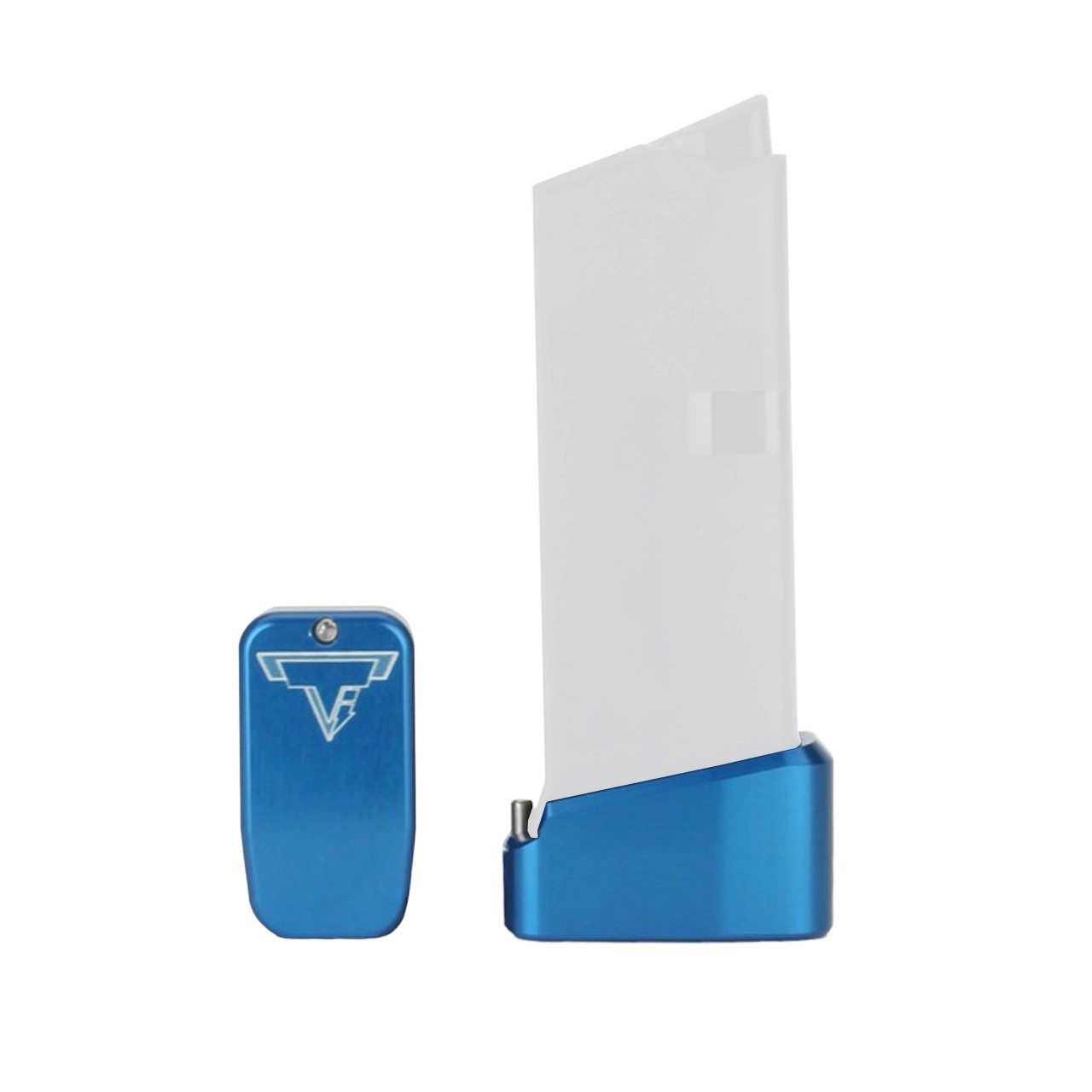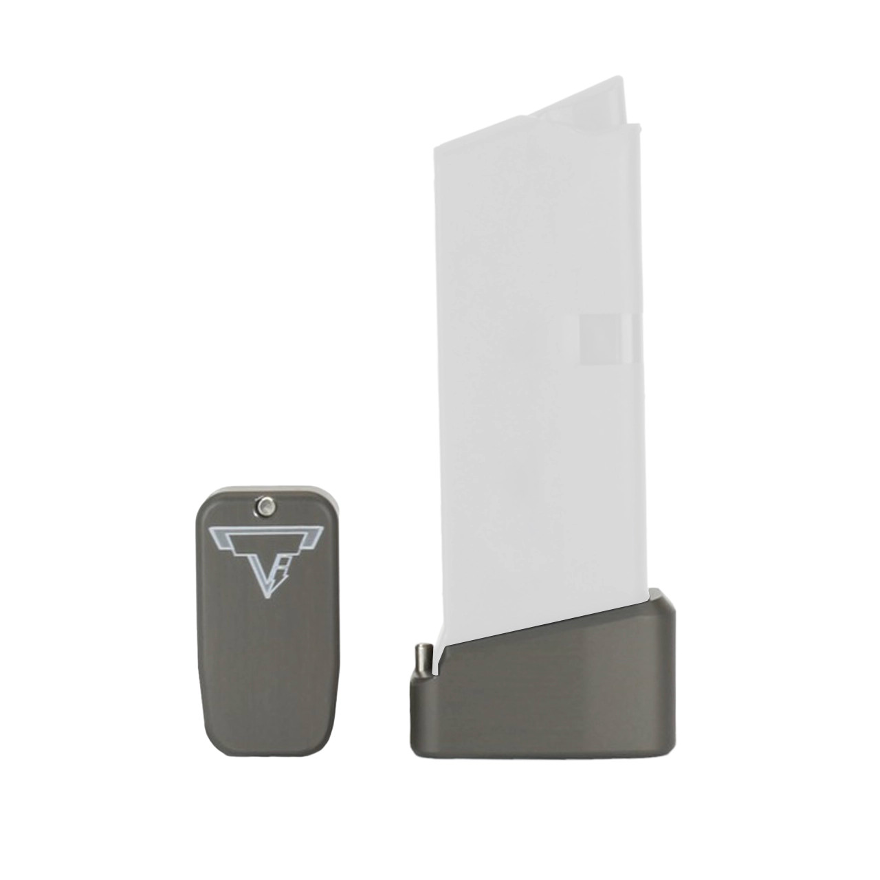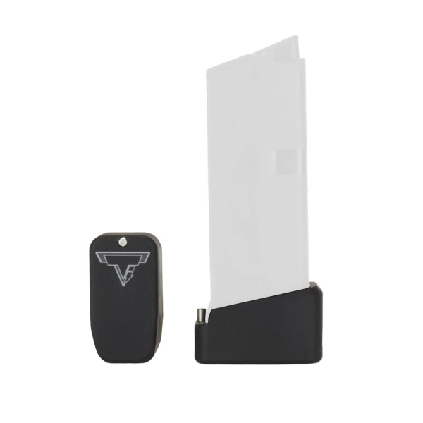 This Taran Tactical Innovations GLOCK base pad is designed for the GLOCK 43. This TTI base pad adds 2 extra rounds to the magazine. We use our patented push pin design to lock the base pad to the magazine, which makes for easy field stripping and cleaning of your magazine. Just push down the pin, slide the base pad on and push the pin up to lock it onto the magazine. Our one piece design is great because there are no extra parts or tools needed to attach the base pad to your magazine. The base pad itself is machined out of billet aluminum and is hard anodized to ensure durable long lasting color. All machining and manufacturing is done in the USA.