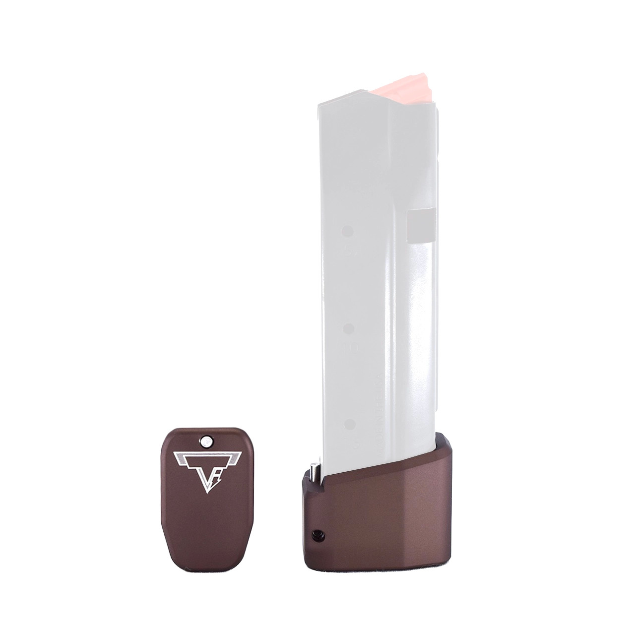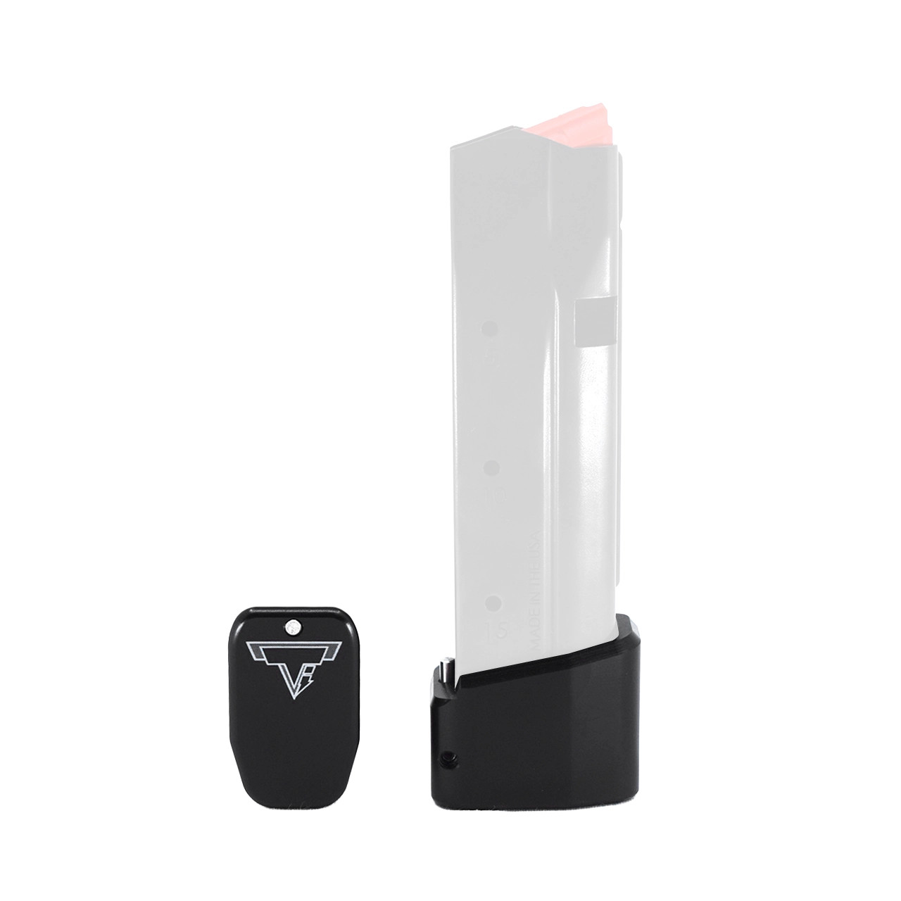 The Taran Tactical Innovations +5 Basepad for the Shield Arms® Gen 1 & 2 15 round magazine (for use in the GLOCK 48 and 43X). This base pad will add 5 extra rounds in 9mm to the magazine. This base pad does add a little extra weight to the magazine which helps the empty mag drop free easier for faster reloads. This TTI GLOCK base pad, just like all of our base pads, is designed to give you the edge over your adversaries. We use our patented push pin design to lock the base pad to the magazine, which makes for easy field stripping and cleaning your magazines between stages. Just push down the pin, slide the base pad onto the magazine and push the pin up to lock the base pad onto the magazine. Our one piece design is great because there are no extra parts or tools needed to attach the base pad to your magazine. The base pad itself is machined out of billet aluminum and is hard anodized to ensure durable long lasting color. All machining and manufacturing is done in the USA.