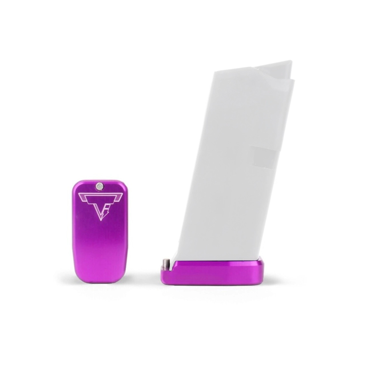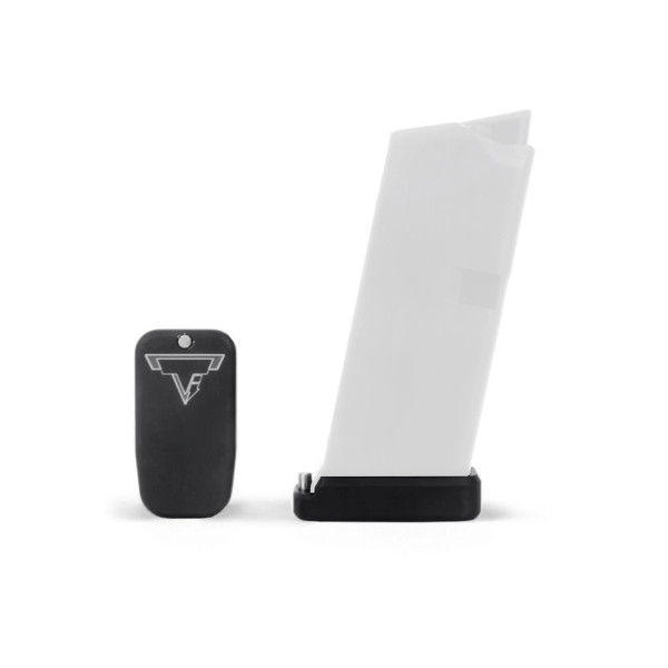 This Taran Tactical Innovations GLOCK base pad is designed for the GLOCK 43. This TTI base pad add 1 extra round to the magazine and is only a 1/8th of an inch longer than the stock base pad. We use our patented push pin design to lock the base pad to the magazine, which makes for easy field stripping and cleaning of your magazine. Just push down the pin, slide the base pad on and push the pin up to lock it onto the magazine. Our one piece design is great because there are no extra parts or tools needed to attach the base pad to your magazine. The base pad itself is machined out of billet aluminum and is hard anodized to ensure durable long lasting color. All machining and manufacturing is done in the USA.