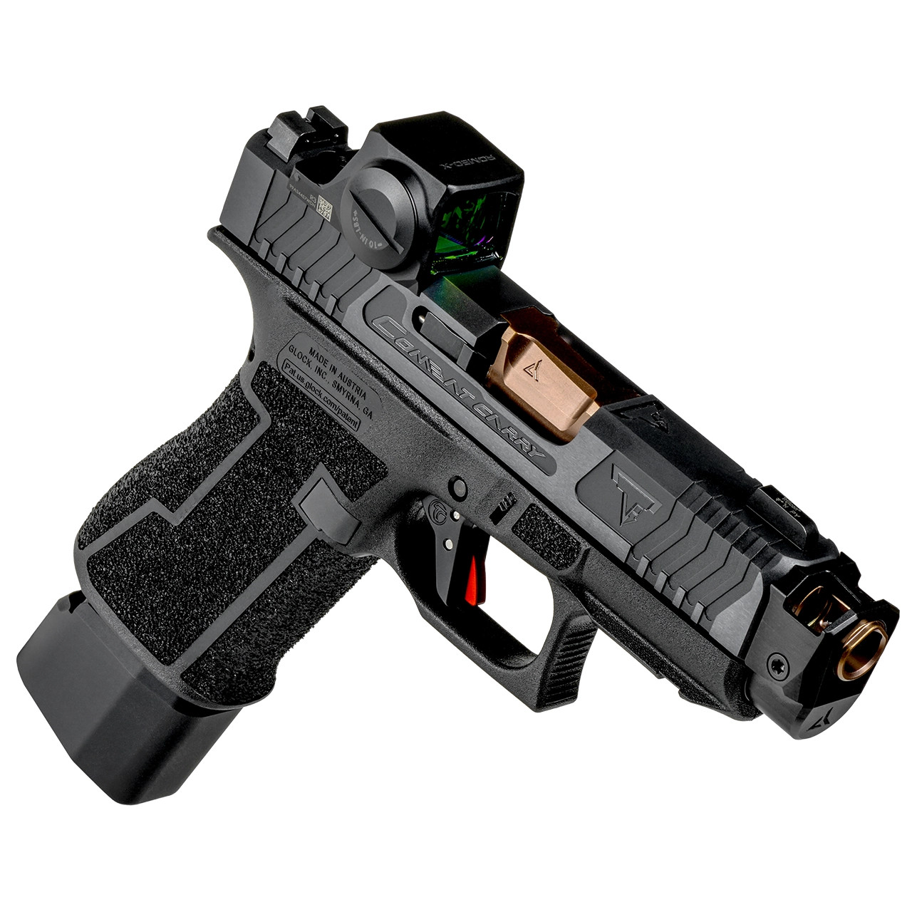 Incorporating unmatched looks and performance, the next generation TTI Combat Carry 43X is here. From our latest slide cuts that enhance grip and functionality, to the co-witness Trijicon night sights paired with the SIG Romeo-X, every part of this gun has been enhanced to create the ultimate carry pistol.