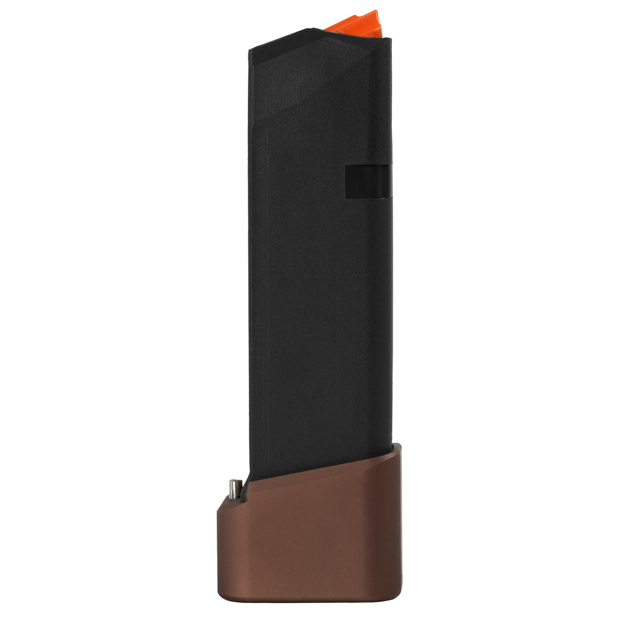 The Taran Tactical Innovations GLOCK +4/5 base pad works on GLOCK models 19/23. This completed magazine will load a total of 20+1 rounds in 9mm. The base pad does add a little extra weight to the magazine which helps the empty mag drop free easier for faster reloads. This GLOCK base pad, just like all of our base pads, is designed to give you the edge over your adversaries. We use our patented push pin design to lock the base pad to the magazine, which makes for easy field stripping and cleaning your magazines between stages. Just push down the pin, slide the base pad on and push the pin up to lock the base pad onto the magazine. Our one piece design is great because there are no extra parts or tools needed to attach the base pad to your magazine. The base pad itself is machined out of billet aluminum and is hard anodized to ensure durable long lasting color. All machining and manufacturing is done in the USA.