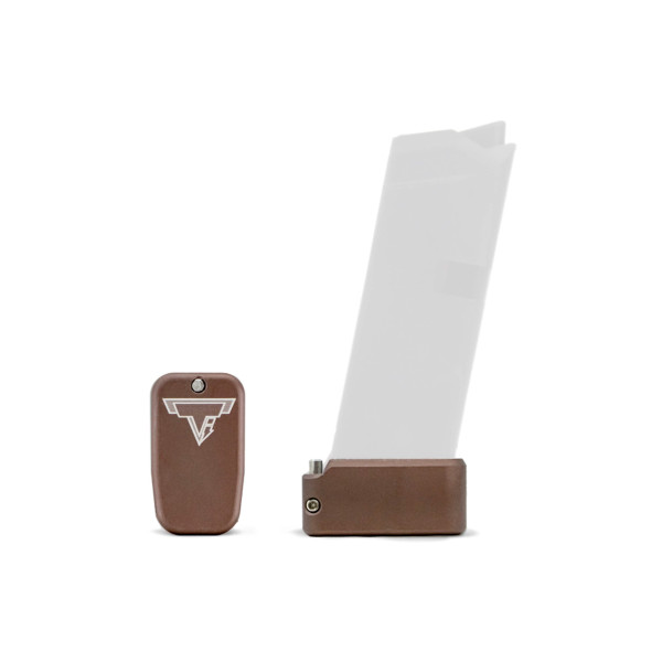 This Taran Tactical Innovations GLOCK base pad is designed for the GLOCK 42. This TTI base pad adds 2 extra round to the magazine. We use our patented push pin design to lock the base pad to the magazine, which makes for easy field stripping and cleaning of your magazine. Just push down the pin, slide the base pad on and push the pin up to lock it onto the magazine. Our one piece design is great because there are no extra parts or tools needed to attach the base pad to your magazine. The base pad itself is machined out of billet aluminum and is hard anodized to ensure durable long lasting color. All machining and manufacturing is done in the USA.