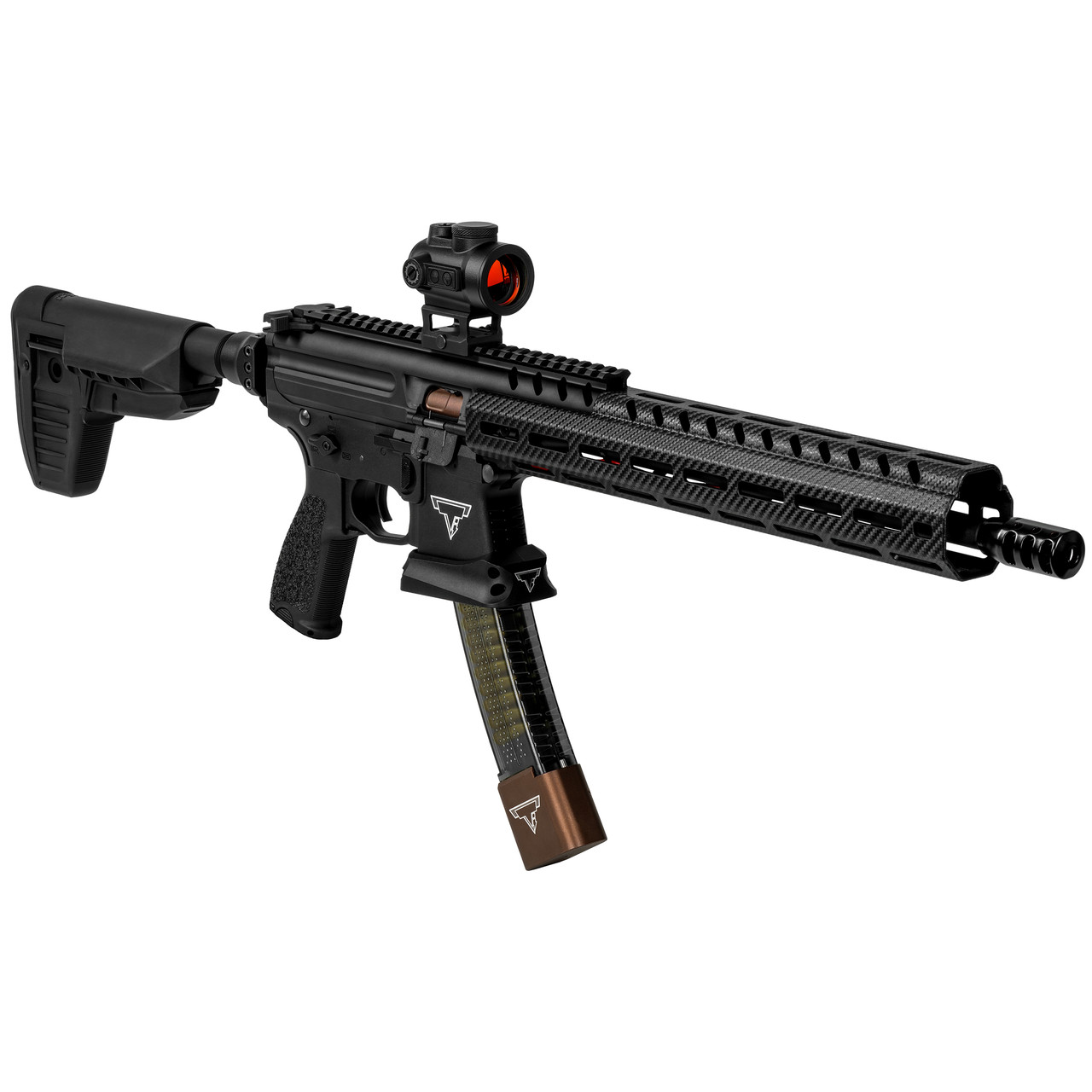 An accurate replica of the same firearm, this replica features an extended barrel, and extended M-LOK metal handguard to match and competition styled 3-port muzzle compensator. In terms of creature comforts, also included is the TTI flared magwell and Picatinny buffer tube adapter with a BCM AIR MOD 0 SOPMOD Stock for comfort and a BCM AIR Gunfighter motor grip for maximum ergonomics. In terms of Airsoft, the extended baseplate adds a little extra charm to your gun, a little way to make your mags stand out compared to others for easier identity. To round this whole build out, even the mock-bolt is coated in the famous Taran bronze-like coloration.