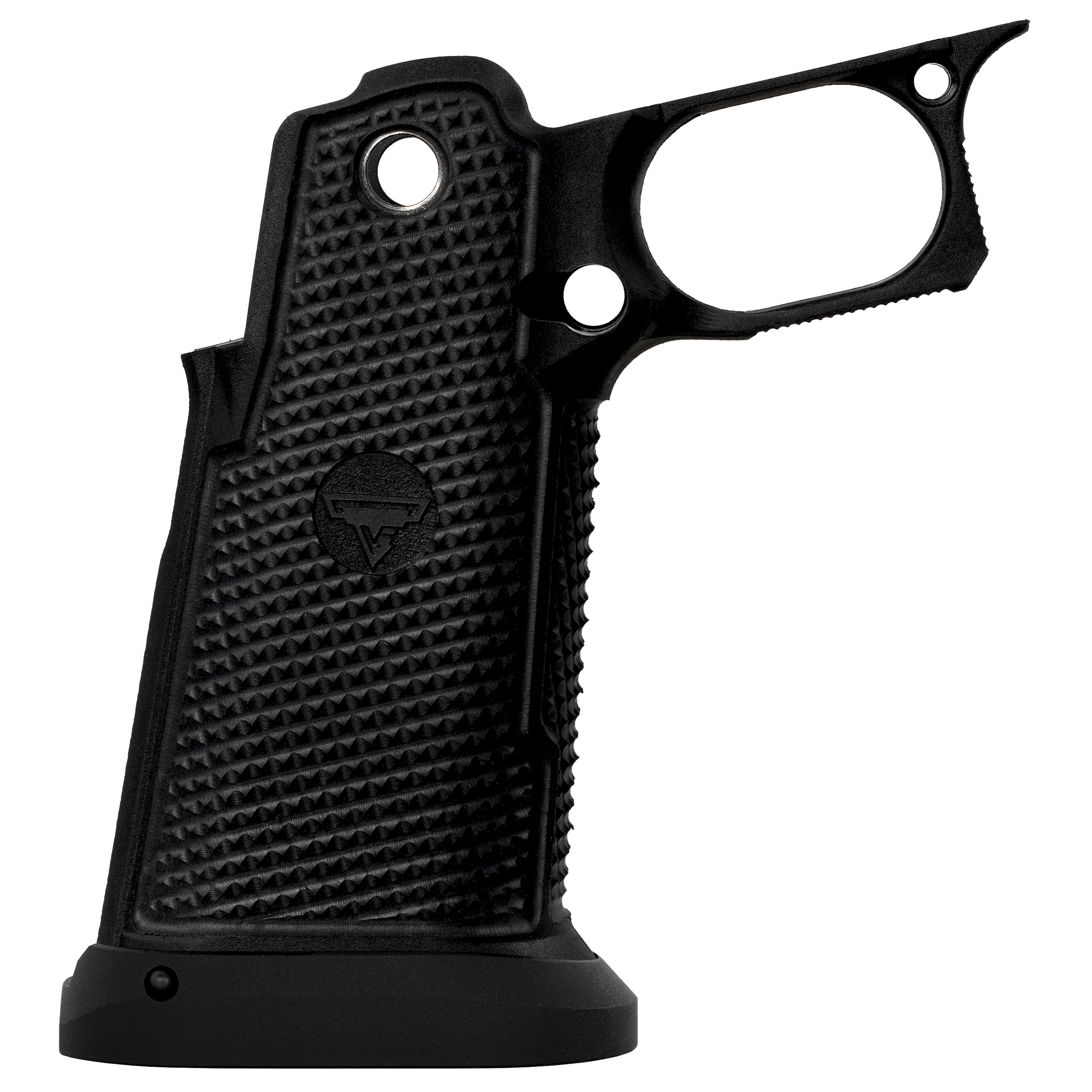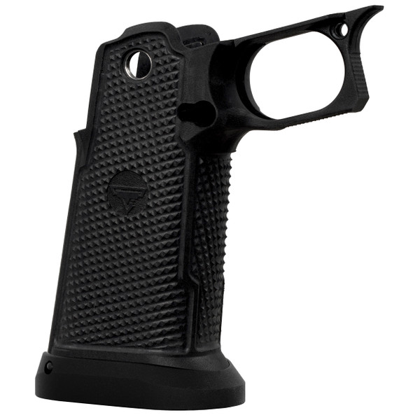 Introducing the all-new first of its kind, fiber/kevlar infused nylon grip module from TTI - The “TTI Phantom” 2011 Grip Module - This cutting edge technology allows for a grip module that doesn’t bend or warp when you grip it, giving you all the advantages of a metal grip without without any of the disadvantages. Precision machined custom aggressive texturing ensures the gun never leaves your hands.