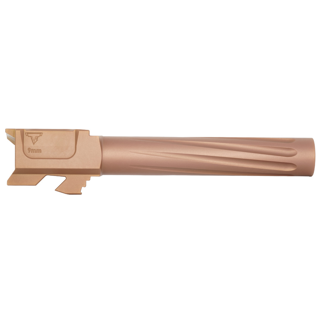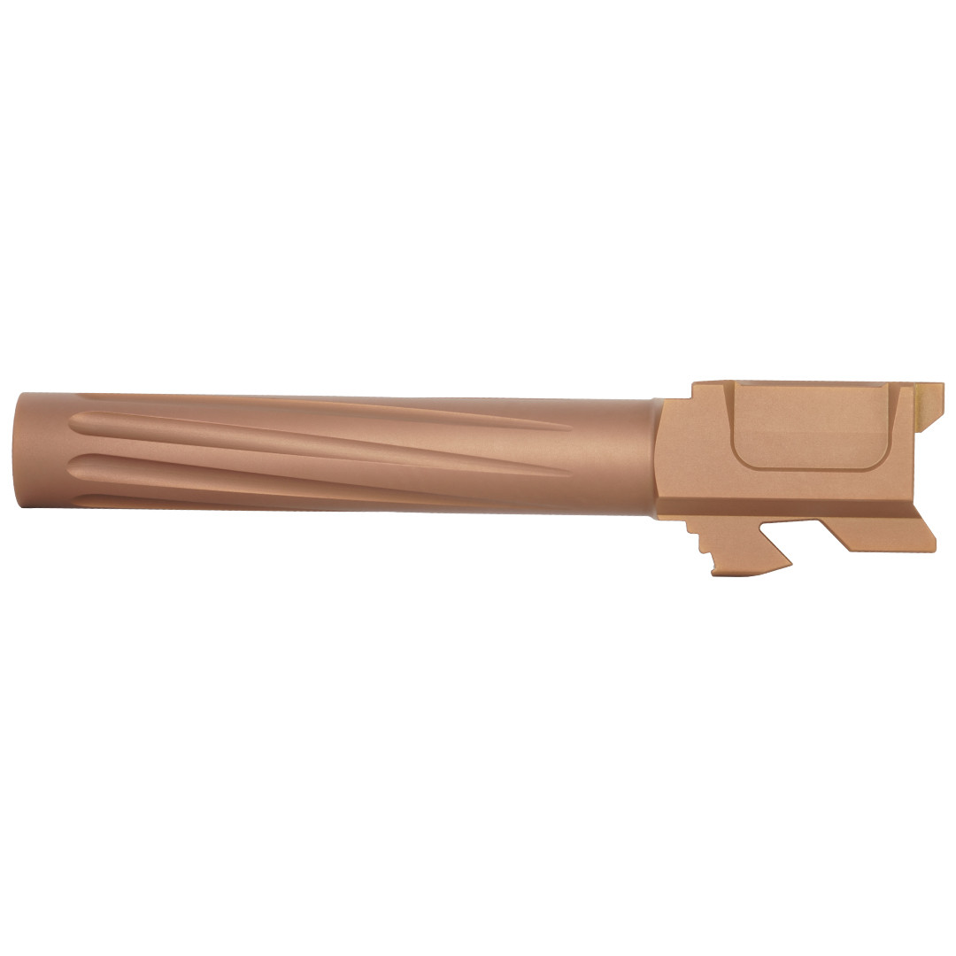 The Taran Tactical Innovations Match Grade Barrel gives you the ultimate edge in competition and self defense shooting. When accuracy matters, look no further than our match grade barrels. Fluted for increased cooling and less weight overall, our precision machined barrels feature 416R Stainless Steel with a 1/14”RH twist rate and a PVD bronze coating for the maximum corrosion and wear resistance.